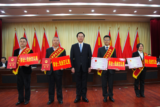 2012年3月19日,在鞍山科技大會(huì)上我公司項(xiàng)目《高性能熱軋H型鋼復(fù)合生產(chǎn)線工藝創(chuàng)新與技術(shù)開發(fā)》榮獲2012年度鞍山市科技進(jìn)步特等獎(jiǎng),公司常務(wù)副總經(jīng)理、總工程師王洪新參加頒獎(jiǎng)儀式。