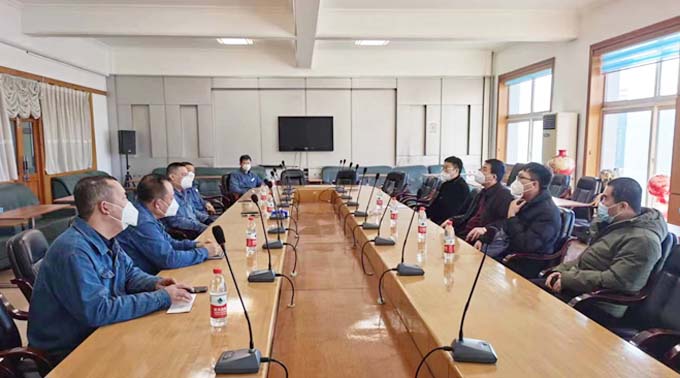 2023年1月9日,鞍山市經濟開發(fā)區(qū)市場監(jiān)督管理局新任局長姚繼文(右三)、特種設備主管副局長郎斌初(右四)及業(yè)務主管人員,到寶得公司進行調研、走訪。公司領導和業(yè)務主管部門分別介紹了公司安全生產和特種設備管理工作的開展情況。姚繼文局長對寶得公司安全生產和特種 設備管理工作取得的成績給予了肯定和贊揚,并對開展好新一年的工作提出了要求。公司副總經理陳旭東(左三)、路士洪(左二)等領導全程陪同。